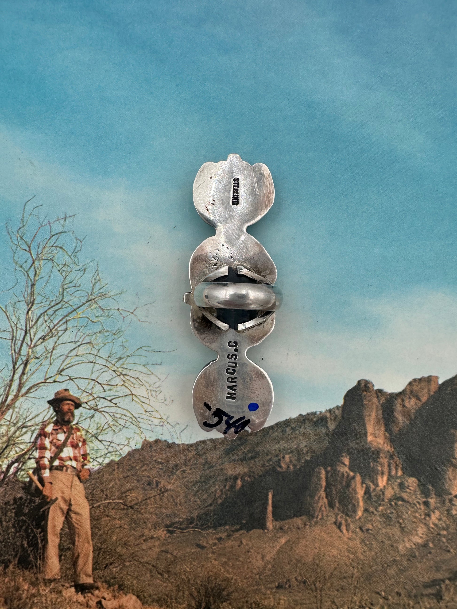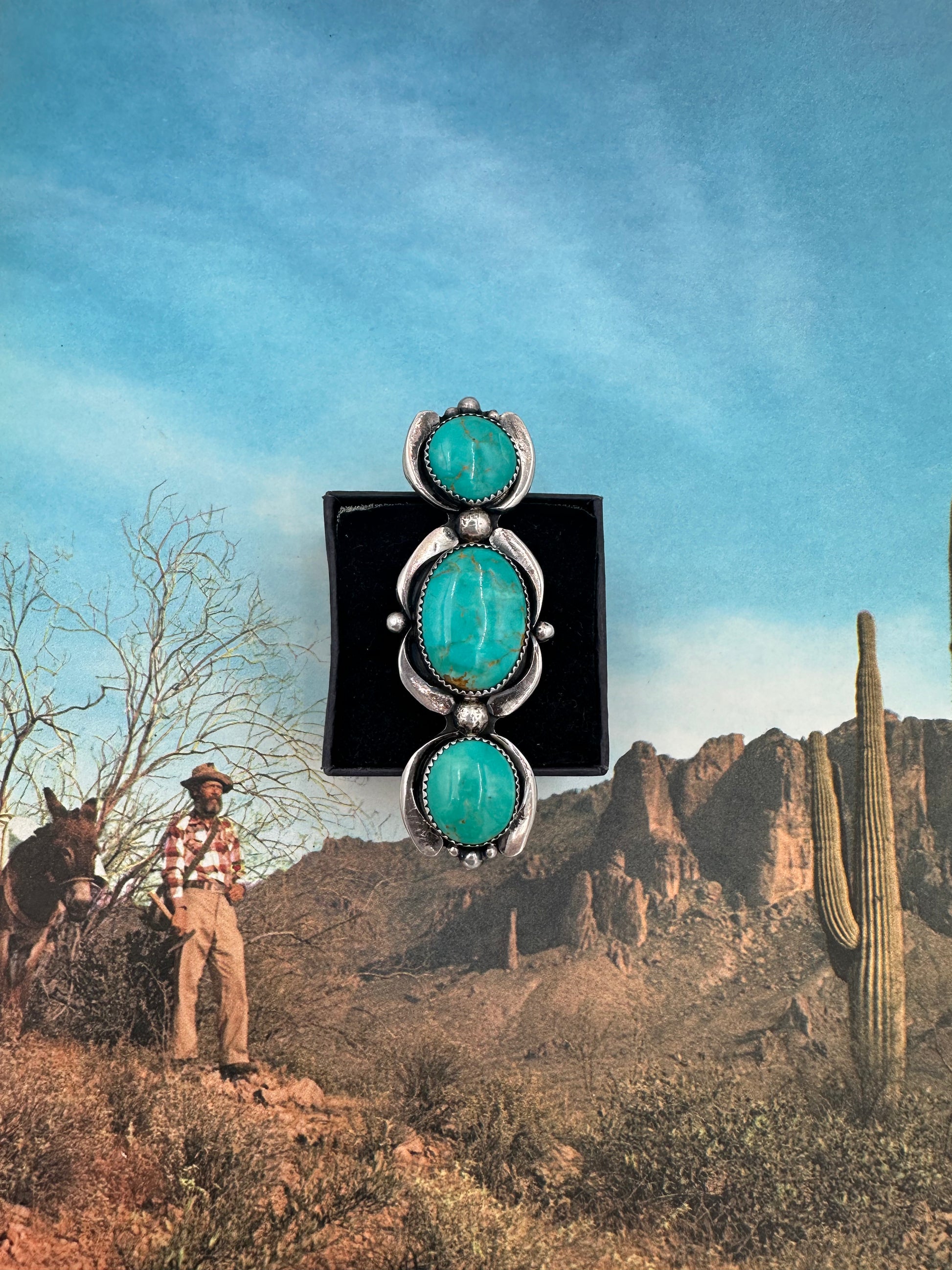 This is the Cadillac of all rings! It's gorgeous in color and size! It has three green turquoise stones and is made by Marcus Chavez