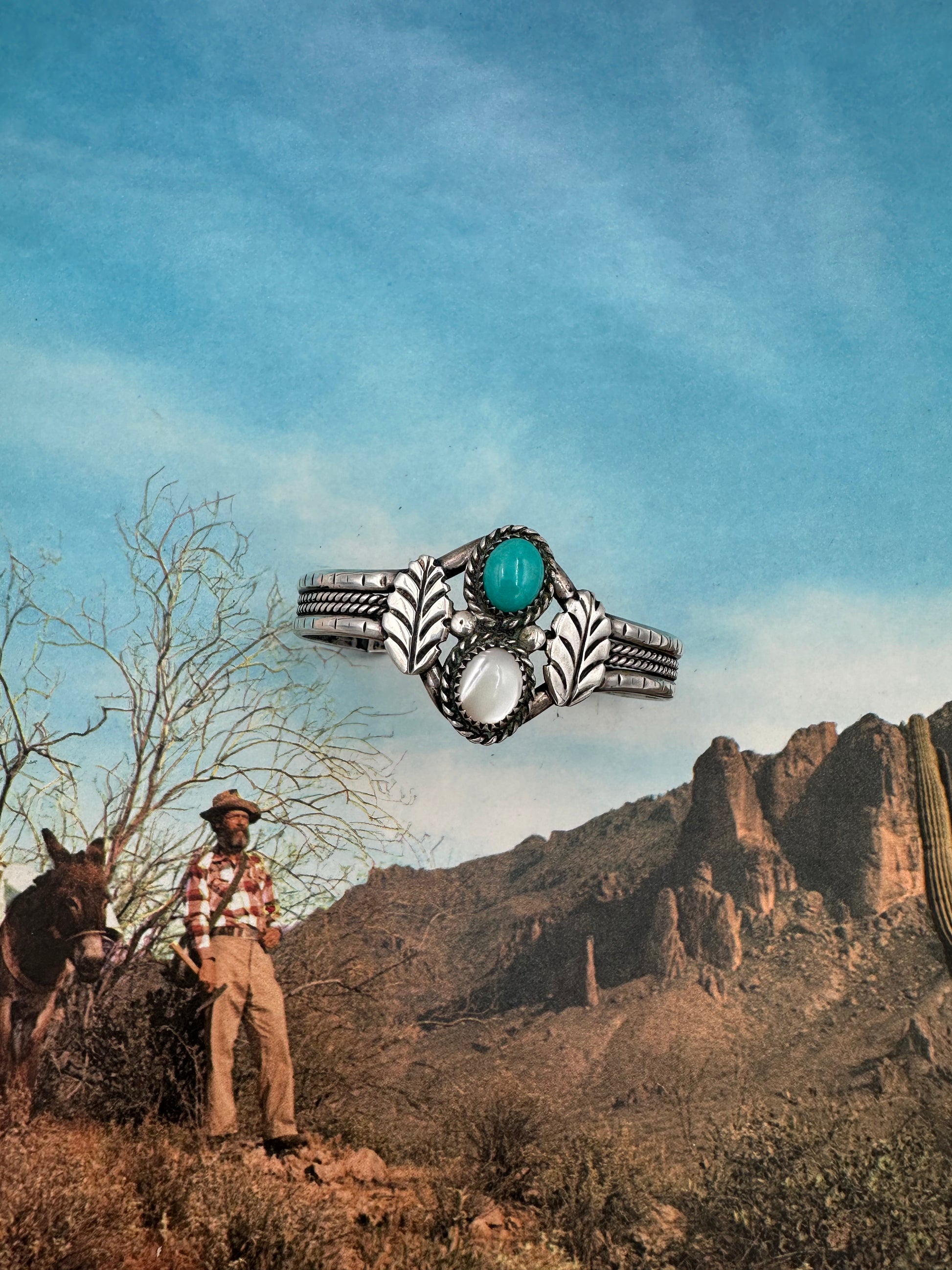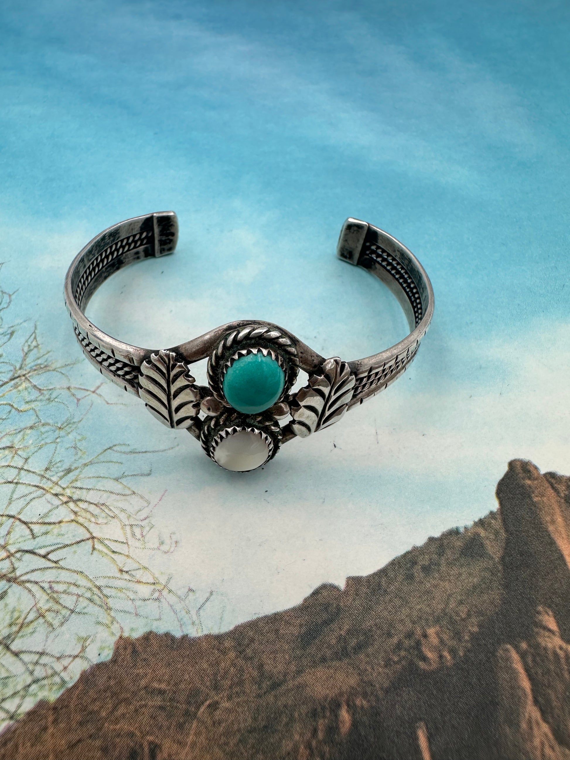 Vintage Mother Of Pearl and Turquoise Cuff Bracelet