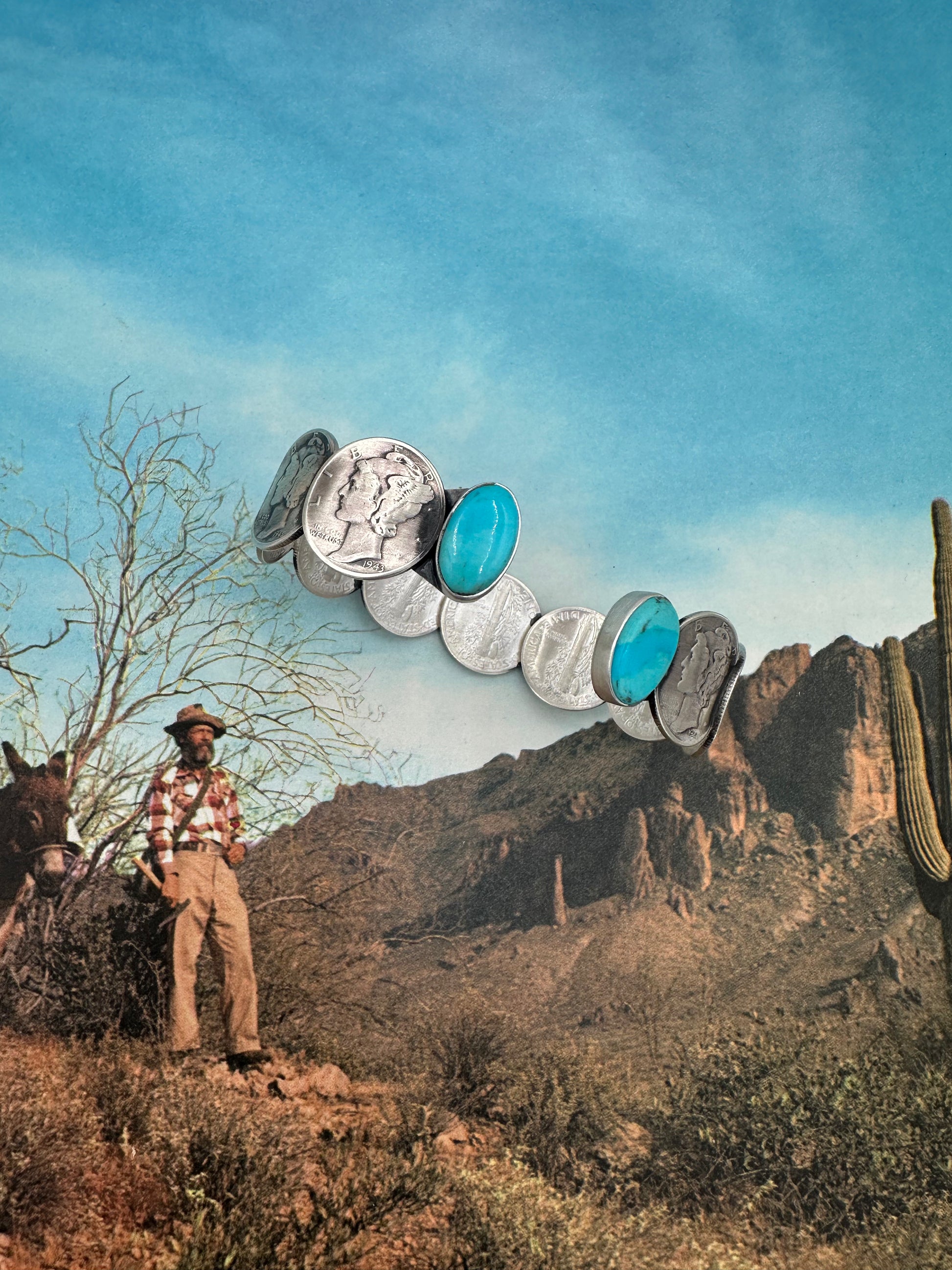 Liberty Dime Cuff Bracelet With Turquoise Ends