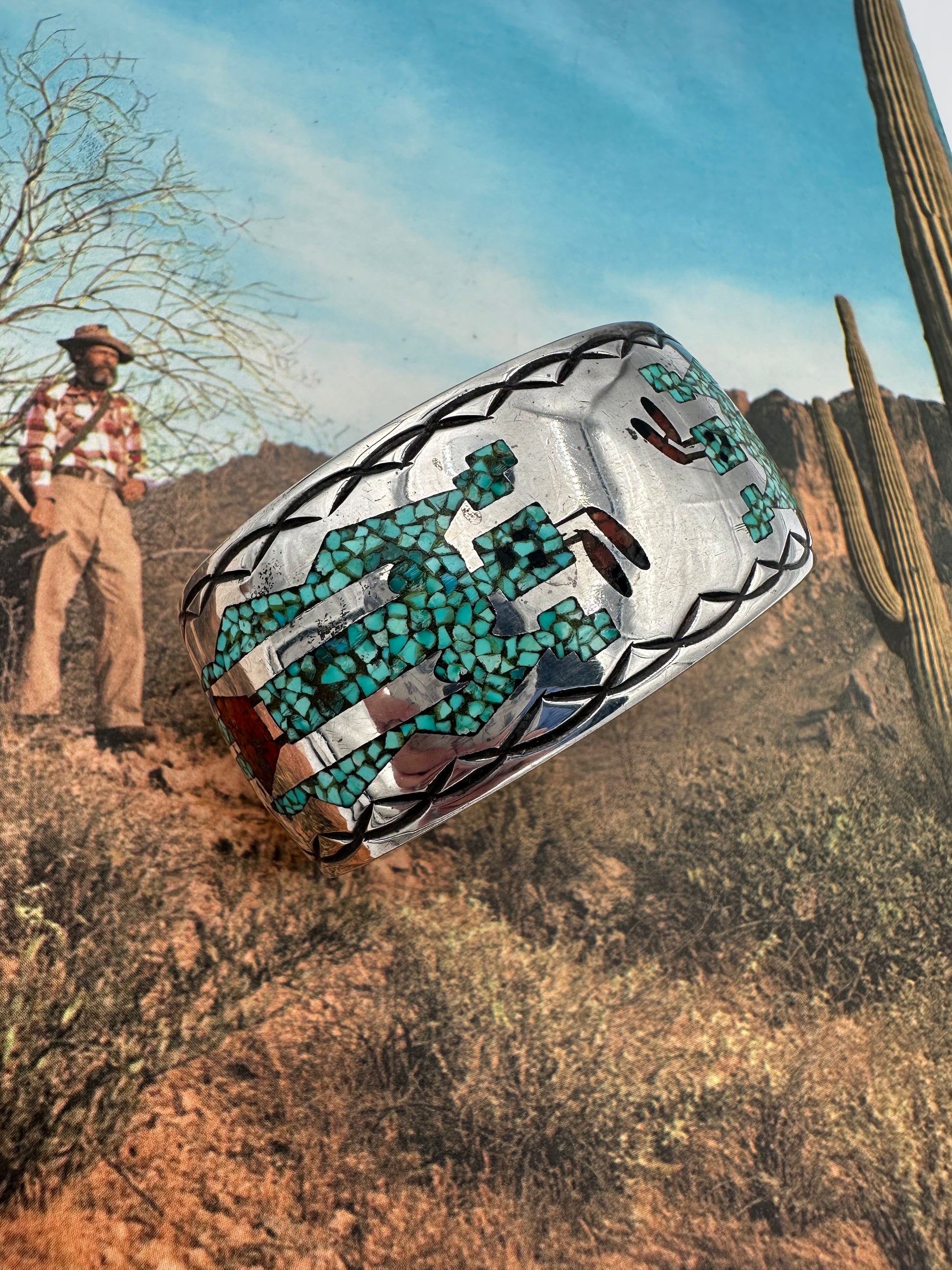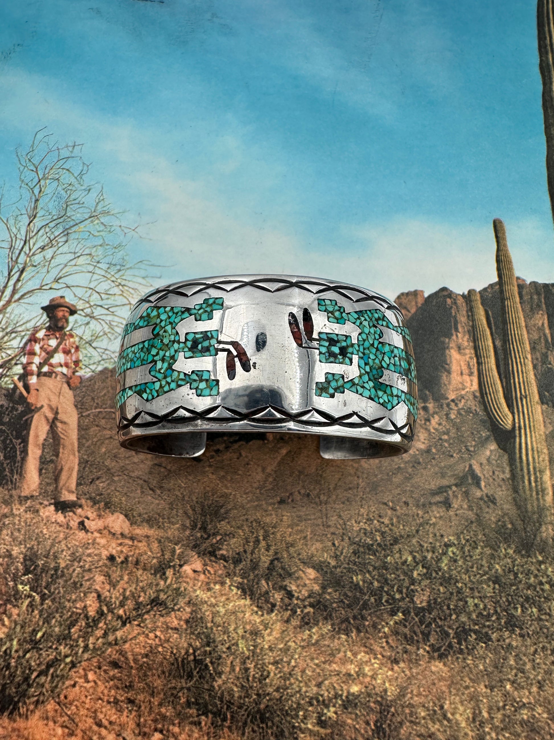 Vintage Inlay Turquoise & Coral Cuff Bracelet