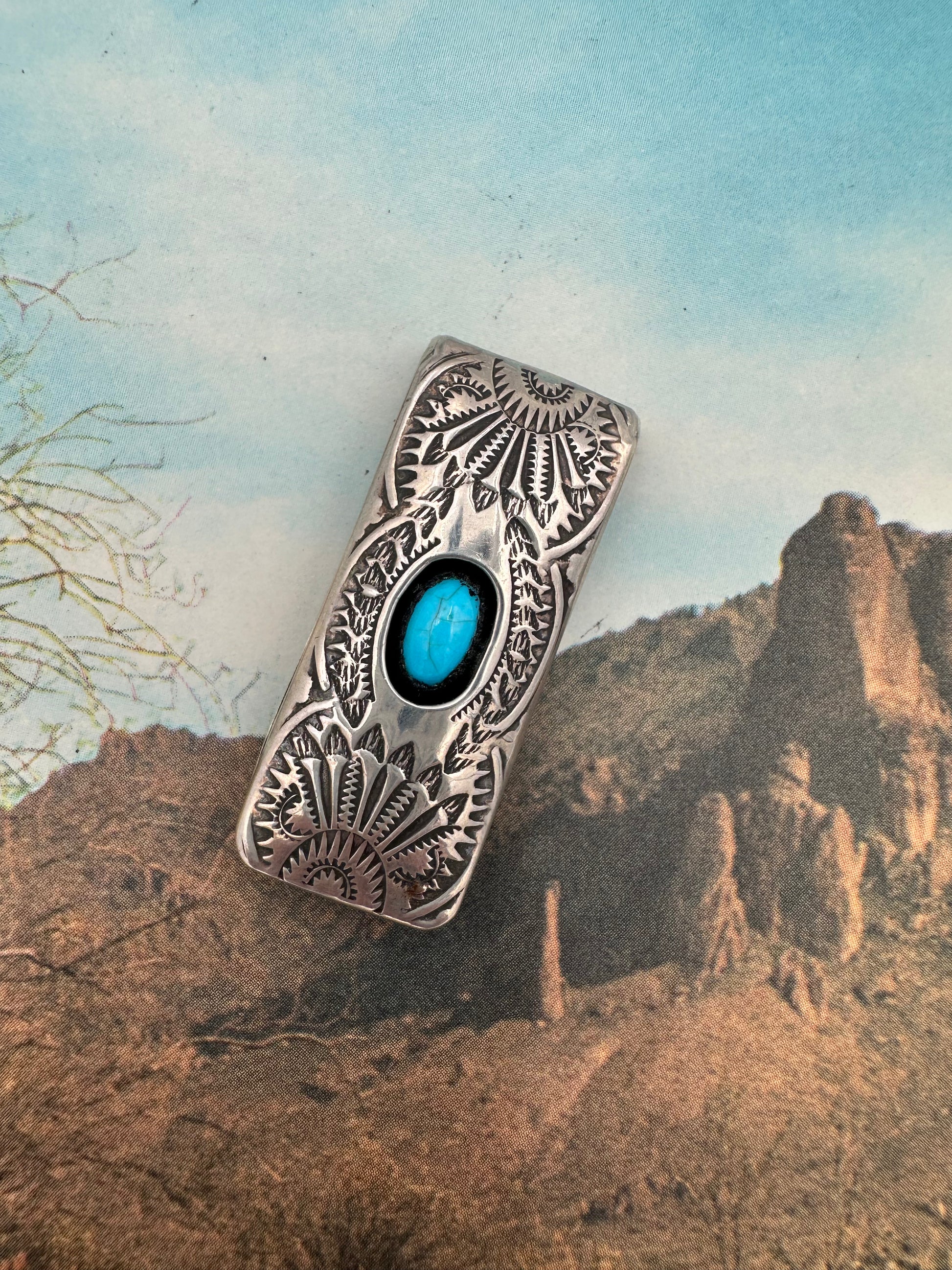 Stamped Sterling Silver and Turquoise on top portion of money clip
