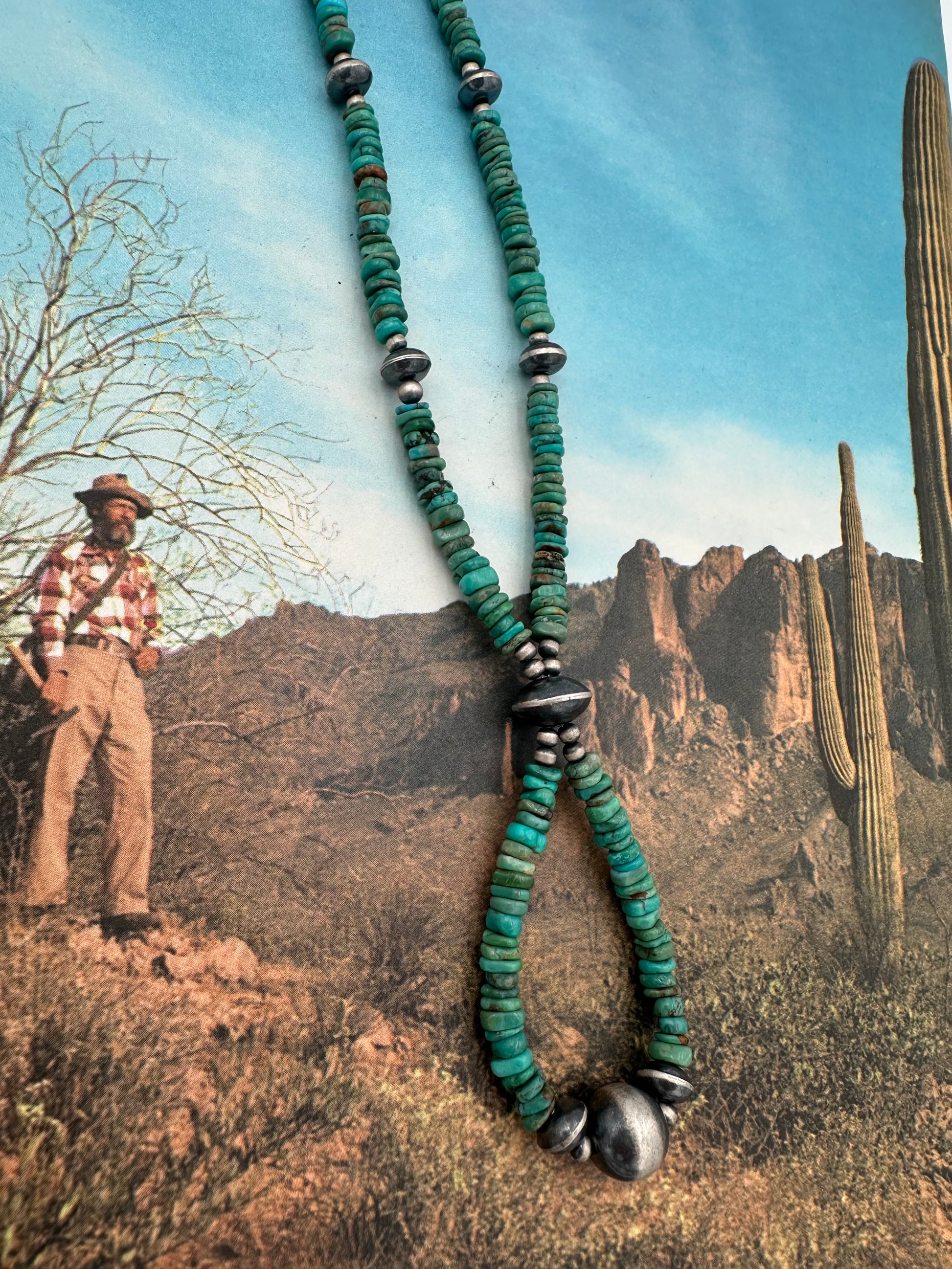 Beautiful Red River Turquoise and Sterling Silver Jacla Inspired Necklace